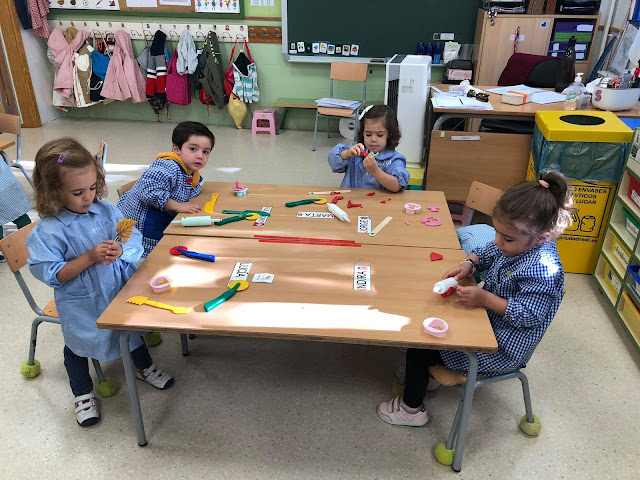 Y también estamos disfrutando mucho con moldes para la plasti que nos han comprado las familias y así hacer este ratito más divertido.